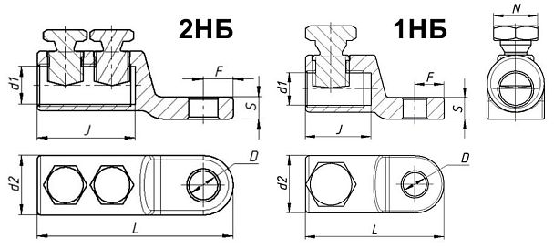 Болтовые наконечники 1НБ и 2НБ до 10 кВ