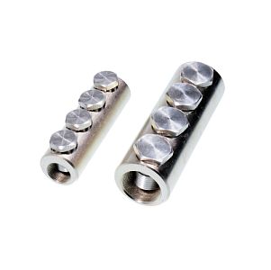 Соединители болтовые кабельные СБ предназначены для соединения алюминиевых и медных жил кабеля с бумажной маслопропитанной и пластиковой изоляцией до 10 кВ. Закрепление соединителя на жиле кабеля осуществляется болтом со срывной головкой, которая скручивается при достижении определенного усилия, обеспечивая надежное соединение. Особенности конструкции: - Изделия комплектуются алюминиевыми болтами, которые обеспечивают прочную фиксацию жилы в корпусе изделия. - СБ имеют эксцентриковое отверстие под жилу. - 4СБ представлены в двух вариантах с монолитной и запрессованной перегородкой. Монолитная перегородка рекомендуется для кабеля с бумажно-маслопропитанной изоляцией до 10 кВ, ее функция - исключить перетекание масла в кабеле с бумажной изоляцией. Соединители с запрессованной перегородкой рекомендуются для кабеля с пластиковой изоляцией до 10 кВ.