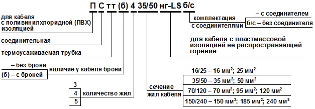Муфты предназначены для установки на 3-х, 4-х и 5-ти жильные кабели с пластмассовой изоляцией с броней или без брони на напряжение до 1 кВ, например, АВВГ, ВВГ, АПВГ, ПвВГ, АВБбШв, ВВГнг-13 и пр.